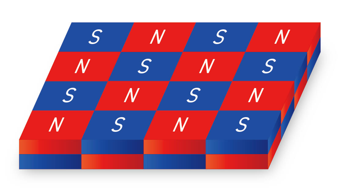 角型ネオジム磁石を、ステンレスケースにタイル状に並列収納した高磁力プレートです。 表面磁束密度はマグネットバーよりも劣りますが、広範囲に強力な磁界が及んでいます。 野菜・製品・衣類など、対象のサイズが大きいものに適しています。